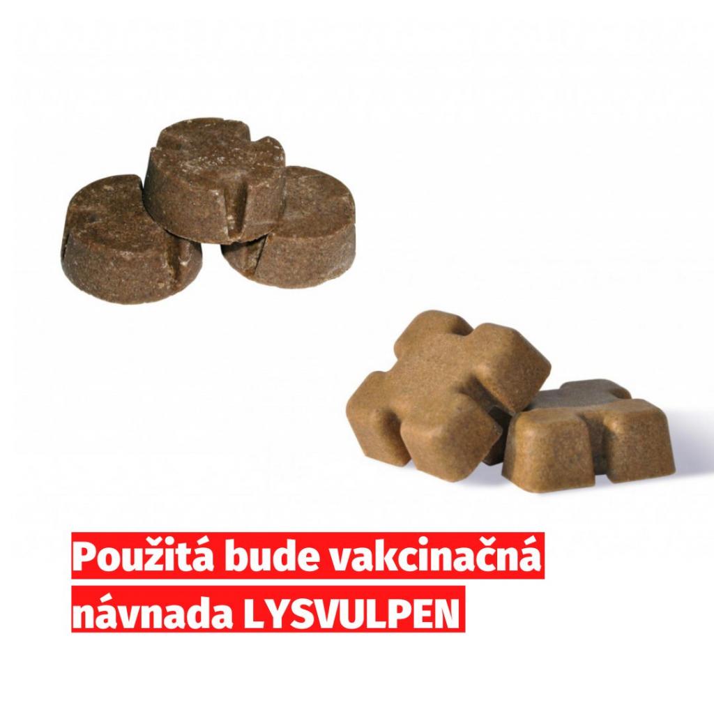 bude prebiehať jesenná vakcinácia líšok proti besnote. Leteckou pokládkou plošne umiestnime 367 796 návnad LYSVULPEN, ktorá obsahuje modifikovaný oslabený vakcinačný kmeň besnoty SAD Bern.