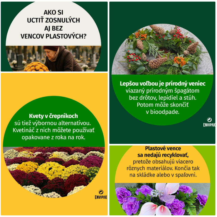 Ozdobené hroby a vysvietené cintoríny sú neodmysliteľnou súčasťou tohto obdobia. Stále si, ale mnohí neuvedomujú, že sa tieto dni spájajú aj s veľkým množstvom odpadu, ktorý vznikne po sviatkoch – plastové kahance, umelé kvety či obaly.